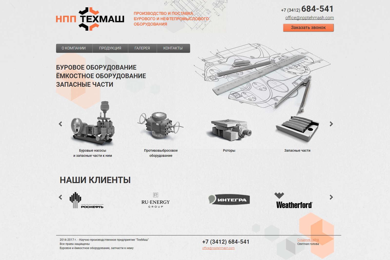 Сайт компании ТехМаш предназначен для того, чтобы рассказать о компании, занимающейся изготовлением нефтяного оборудования.