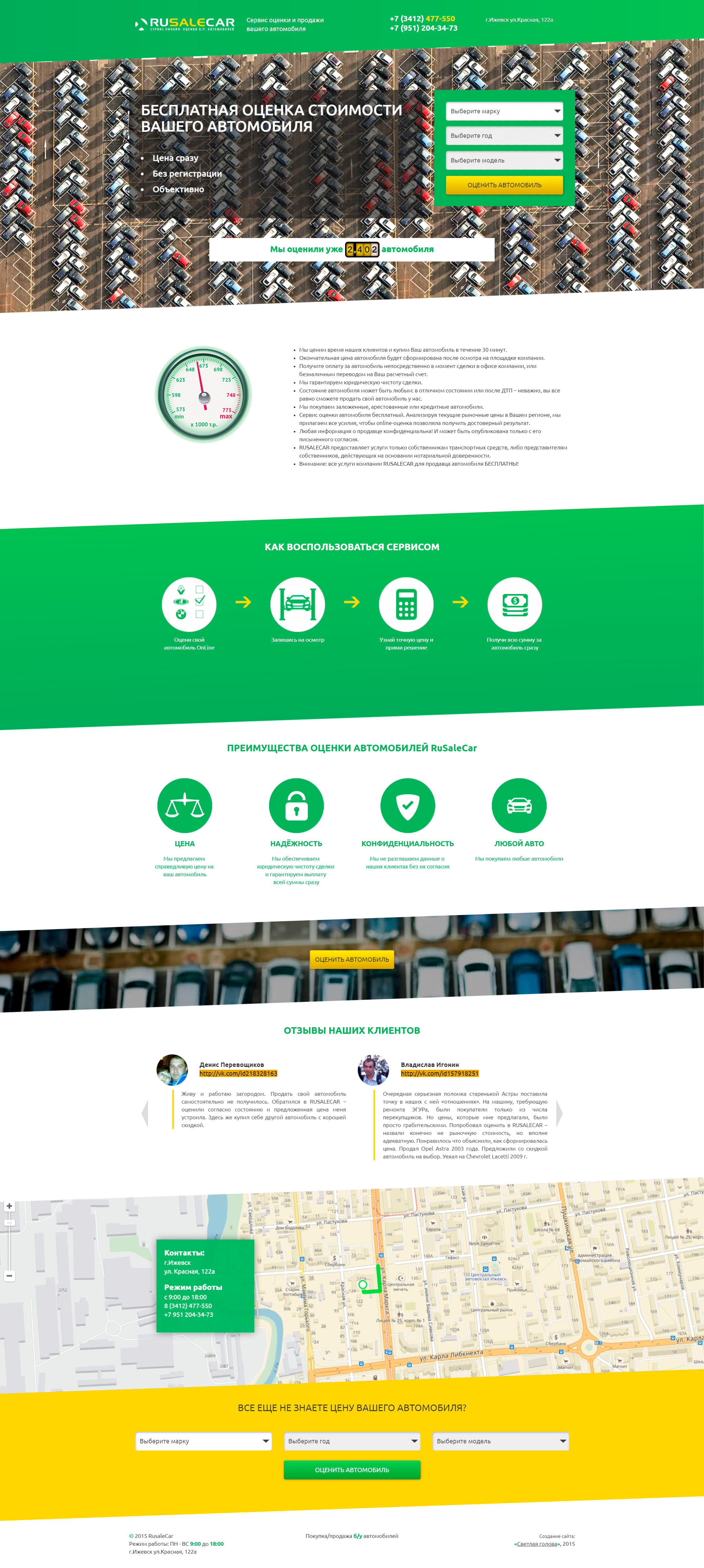 Несмотря на свою простоту и лаконичность, одностраничник для Rusalecar отличается информативностью и подробным описанием оказываемых услуг. В разработке лэндинга rusalecar.ru мы добились того, что пользователь получает максимально полную информацию при просмотре сайта. Без необходимости звонить или обращаться в компанию, Обладатель автомобиля может оставить заявку на оценку своего “железного коня”. Наглядным показателем качественно выполненной работы стала статистика: количество заявок с сайта достигает 250 в месяц!