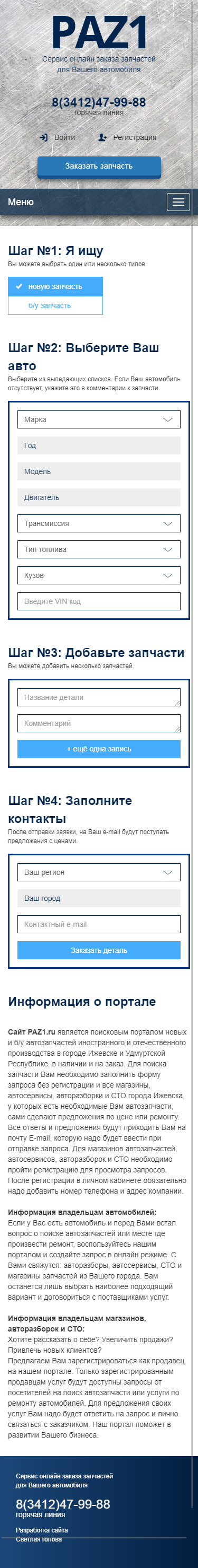 Сервис онлайн-поиска и заказа запасных частей RAZ1 помогает продавцу и покупателю найти друг друга, а мы помогли сервису с созданием полезного и актуального сайта.